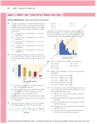 UNIT 1, PART I AP® STATISTICS PRACTICE TEST