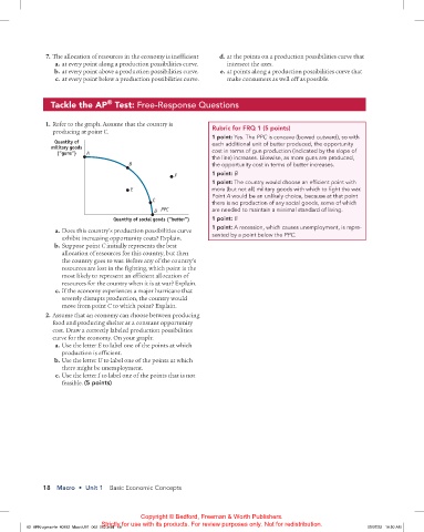 7. The allocation of resources in the economy is inefficient d. at the points on a production possibilities curve that