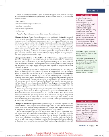 Table 1.5-1 provides an overview of the factors that shift supply. supply curve. It is correct to