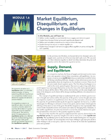 equilibrium when the price has offering to buy more or less of the good. Recall the shoppers at the supermarket who