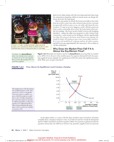 FIGURE 1.6-2 Price Above Its Equilibrium Level Creates a Surplus