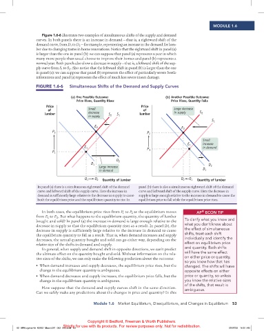 Figure 1.6-6 illustrates two examples of simultaneous shifts of the supply and demand